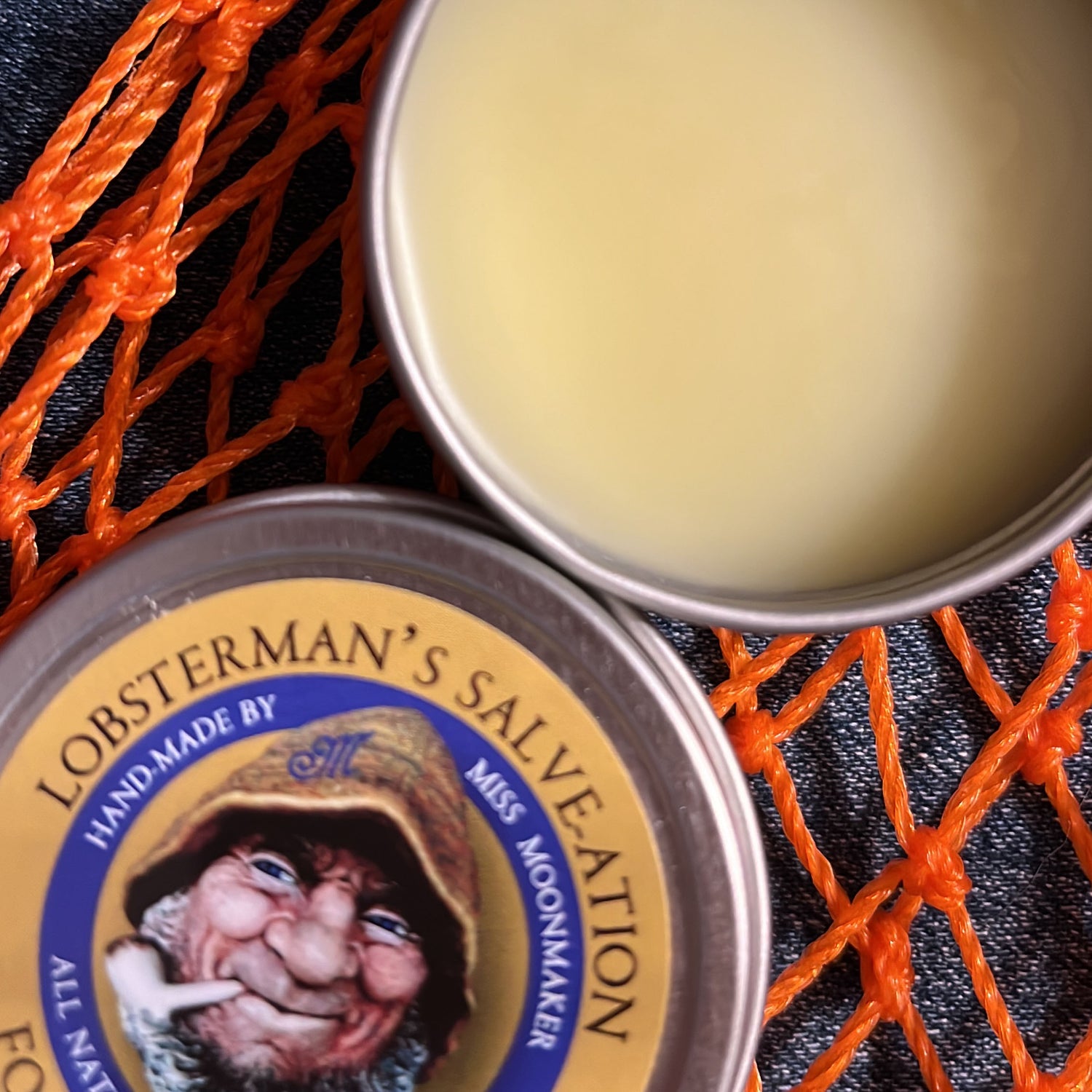 Not just for Lobsterman "buggin' on the coast of Maine. A natural solution for dry skin on the go. It gets the job done, Bub! Moisturizing blend of sweet almond oil, coconut and olive oils infused with calendula flowers and plantain leaf for soothing with a hint of cinnamon to help promote healing and keep away those germs that prevent cracked skin from healing. You too will be smelling fresh like a lemon tree right off the boat! This is ain't ordinary salve, Mistah. It’s the catch of the day. Bring it home from your trip to Vacationland, as a piece of Maine brought home with you.